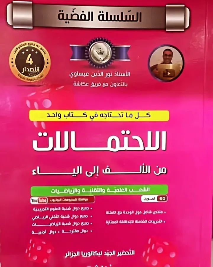 السلسلة الفضية الاحتمالات من الالف إلى الياء للأستاذ نور الدين عيساوي الإصدار الرابع للشعب العلمية و التقنية و الرياضيات