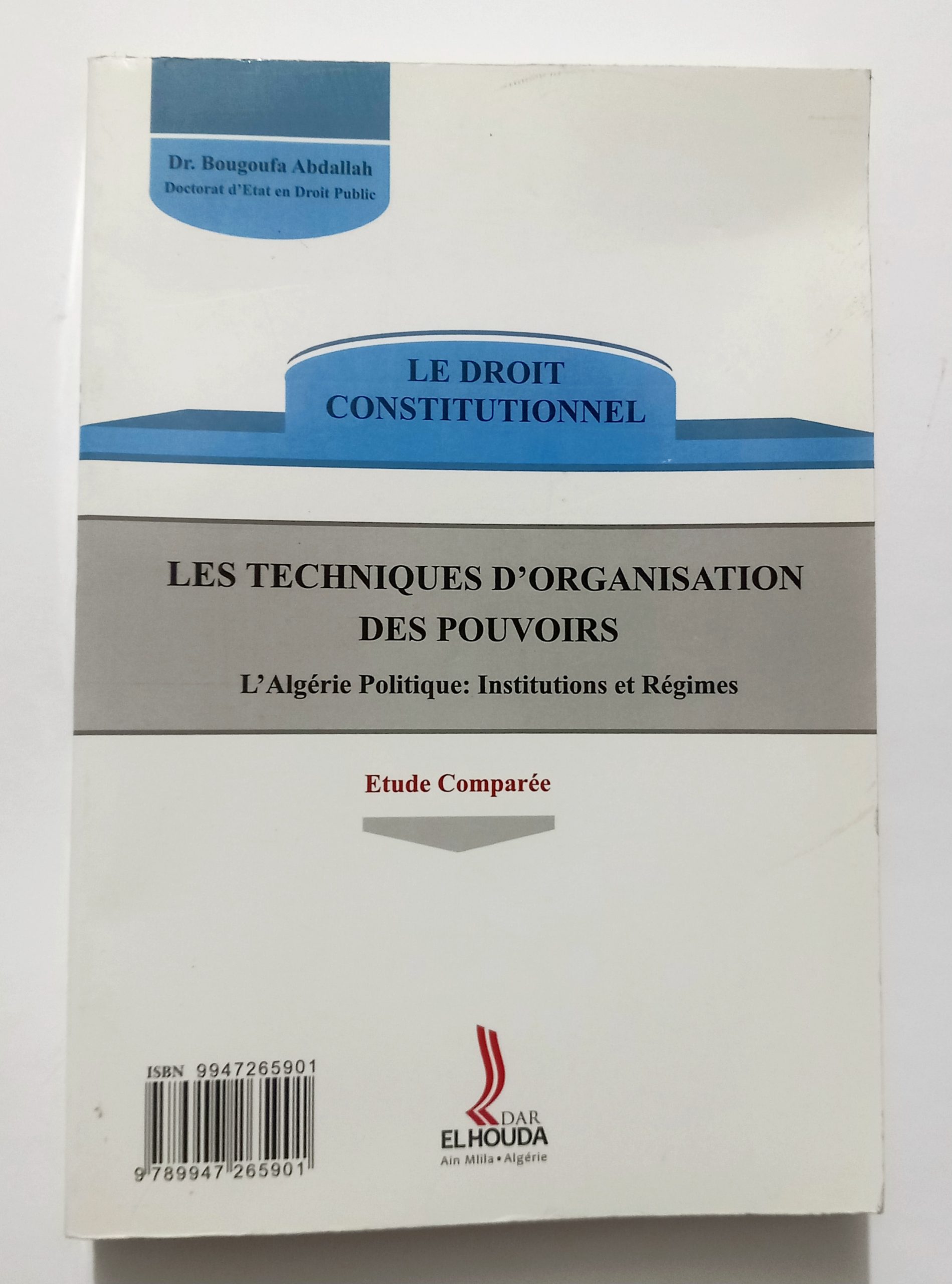 القانون الدستوري آليات تنظيم السلطة الجزائر السياسية: المؤسسات و الأنظمة دراسة مقارنة د. عبدالله بوقفة دار الهدى عربي – فرنسي