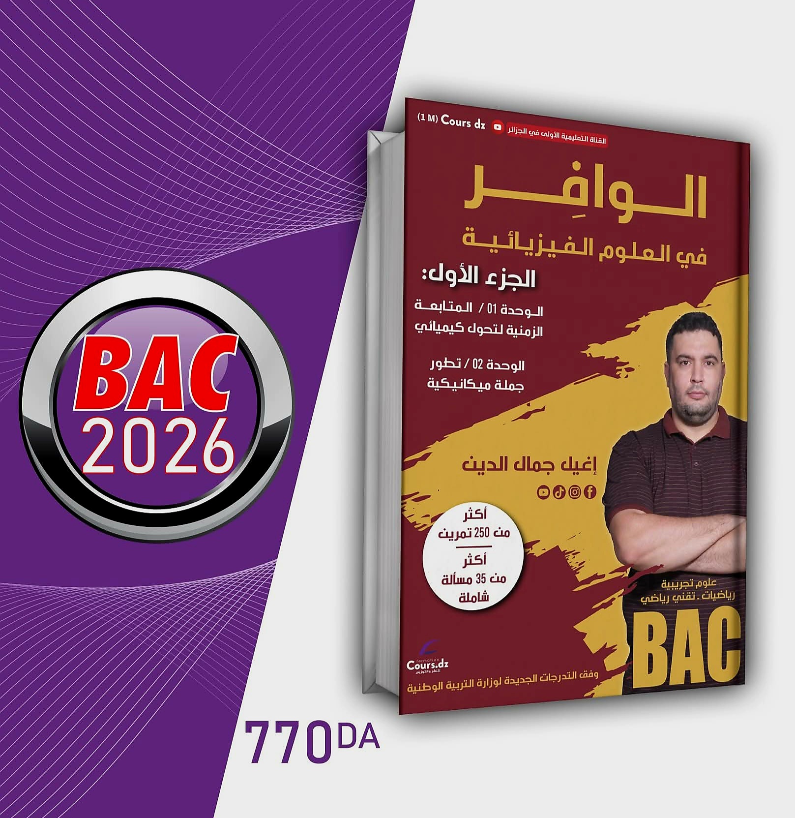 الوافر في العلوم الفيزيائية الجزء الأول للأستاذ إغليل جمال الدين شعبة علوم تجريبية-رياضيات-تقني رياضي